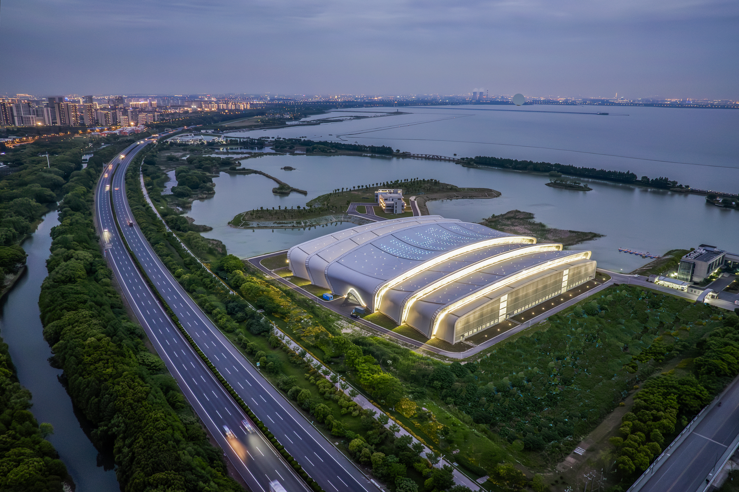 河湖治理研究基地项目位于江苏省无锡市太湖湾科创带的“一核十园多点”规划核心区,占地111亩,由150米*150米大跨度钢结构太湖试验厅、科研辅助管理用房、浅水湖泊试验模型及测控设备、野外气象综合观测场等部分组成。总建筑面积27243.42 m2,其中地上建筑面积26553.55m2,地下建筑面积689.87m2。